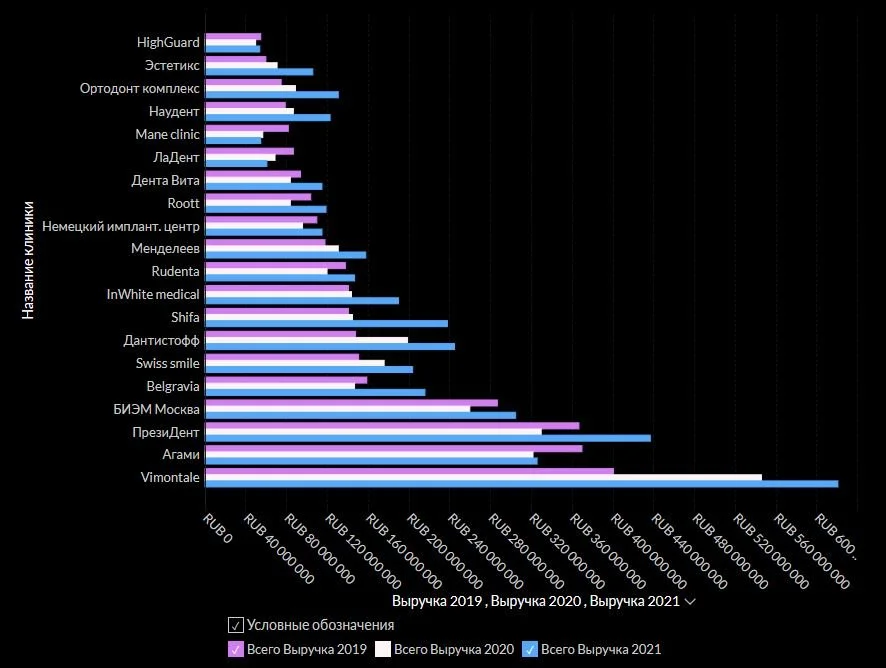 Уже после определения региональных лидеров мы провели уточнение расчета их выручки с учетом нескольких обстоятельств. В том случае, если кроме поликлиники, оператор, действуя в той же управляющей компании, под одним или смежным брендом, развивает стоматологическую, офтальмологическую или другую специализированную клинику, мы учитывали выручку всей сети клиник. Пример – клиники «Центр «Лайт» и «Доктор Лайт», ставшие лидерами в Кировской области и вошедшие в итоговый всероссийский ТОП100. Клиники объединены в группу компаний, но первая из них специализируется на лабораторной диагностике, вторая – на поликлинических услугах. Обратный пример – работающая в Центральном федеральном округе сеть клиник, объединенных под брендами «Новые медицинские технологии» и «Медлайн». У большинства клиник сети одни и те же владельцы – предприниматели из Воронежа Игорь Тюркин и Леонид Кораблин. Но, как свидетельствуют сотрудники самой сети, формально клиники не объединены в группу компаний, существуют обособленно, а за поликлинический сегмент отвечают конкретные юридические лица, выручку которых мы и суммировали при расчете финансовых показателей медицинского направления этой структуры. Многопрофильные детские клиники и сети мы учитывали исключительно в тех случаях, если они, помимо педиатрии, занимаются пациентами старше 18 лет.