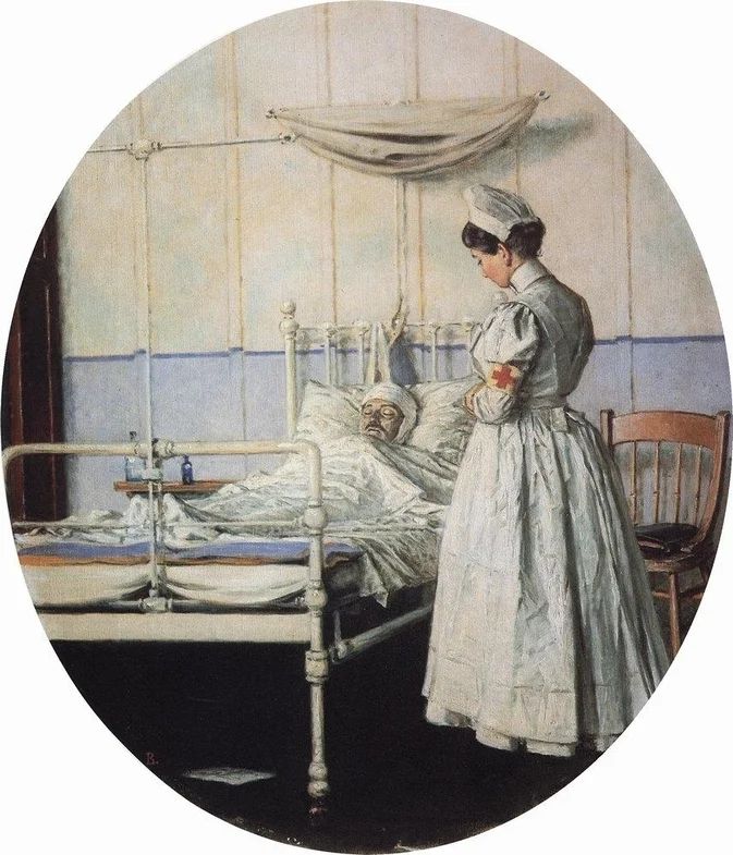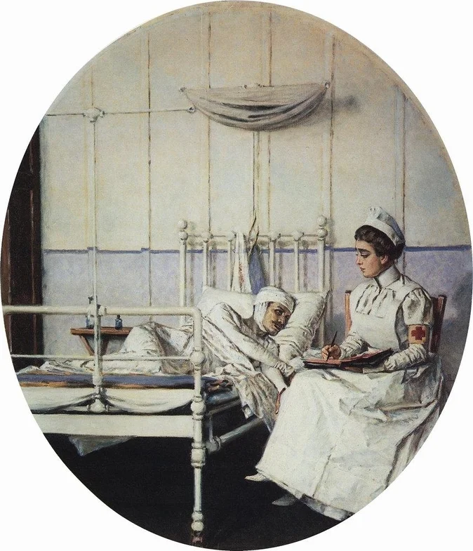 / MEDSTEG CoУ Василия Васильевича Верещагина (1842-1904) есть серия картин, объединенная одним сюжетом: раненый солдат диктует сестре милосердия письмо и.. умирает, не окончив его.