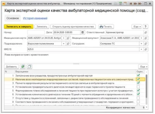 при установке диагноза (основного и заключительного) можно открыть форму чек-листа, в котором врач для каждого критерия зарегистрирует факт его выполнения