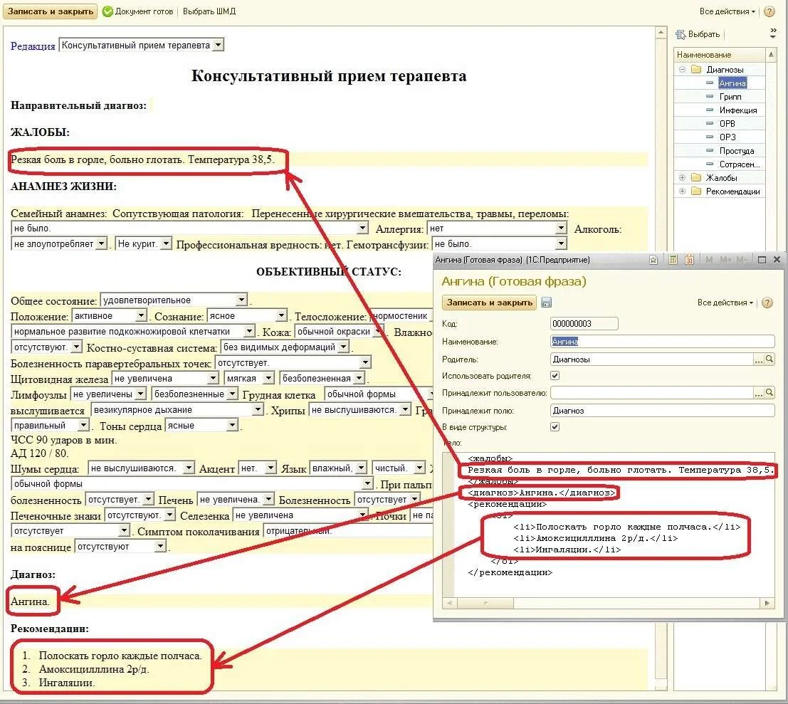 вложенные шаблоны медицинских документов.