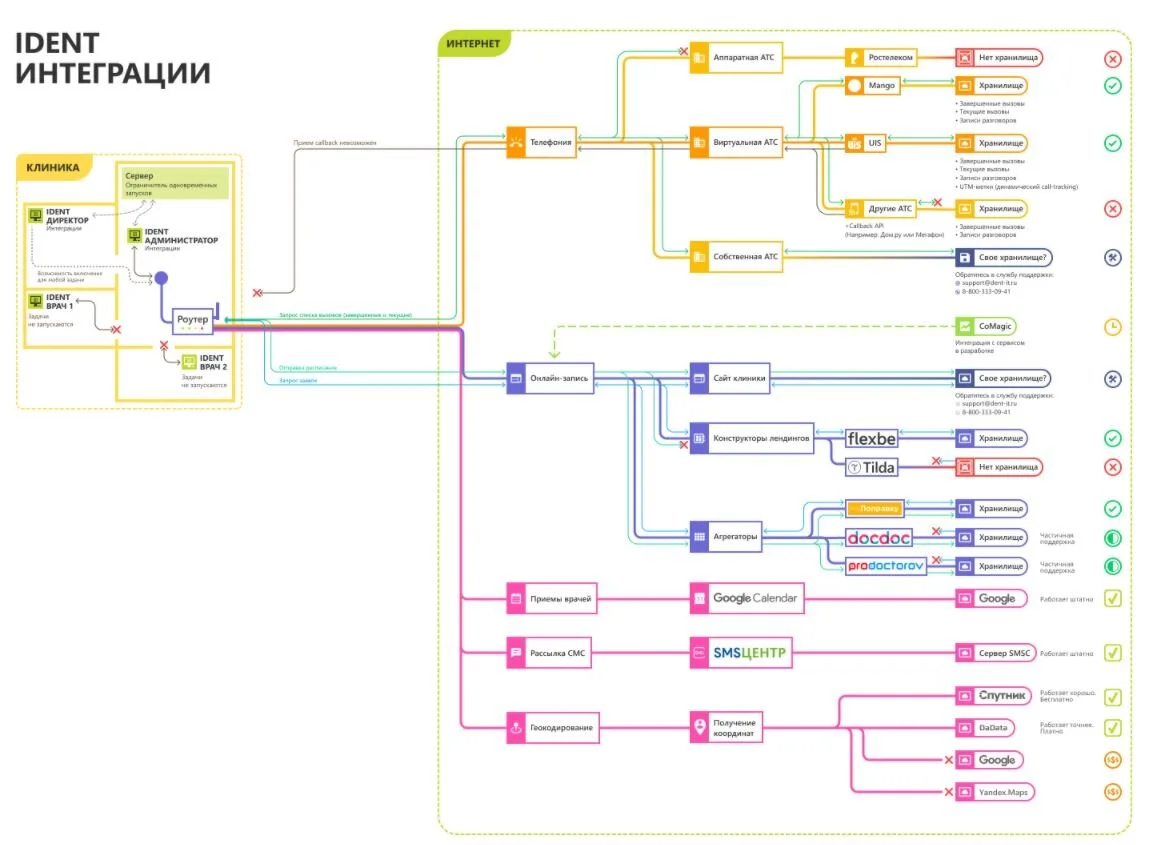 интеграция с телефонией, обработка онлайн-заявок, оценка эффективности вложений в рекламу, контроль качества работы с входящим потоком пациентов