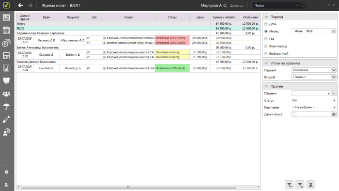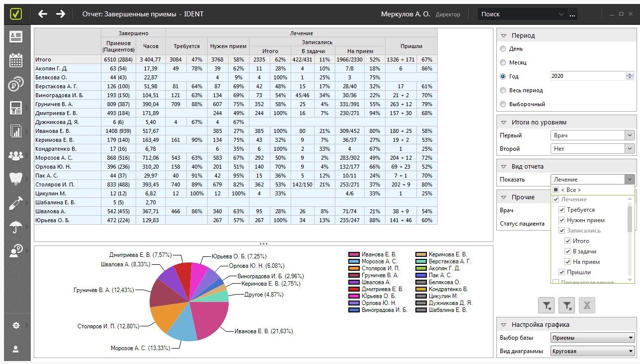 В отчете директор увидит расчет зарплаты для администраторов и ассистентов — по времени в зависимости от вида работ, для врачей — по услугам.