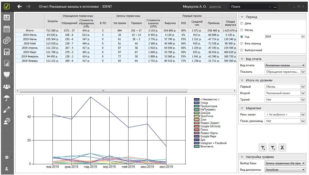 Чтобы вы понимали, какое рекламное мероприятие действительно сработало, исключаются из статистики по рекламе звонки и сообщения сотрудников, контрагентов, тех, кто задает вопрос по своему будущему приему, а также тех, кто пришел по рекомендации другого пациента или сотрудника клиники.Показывает конкретных людей, которые записались и пришли на прием, увидев вашу рекламу; вопросы, которые их интересовали; сколько денег вам принесли эти люди.
