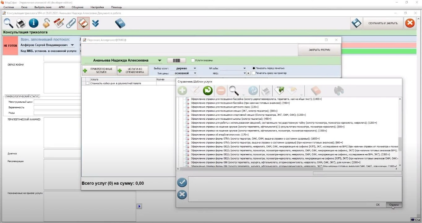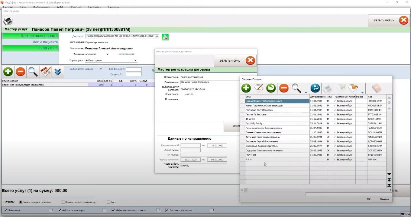 В «МедОфис» реализован документооборот по предоставлению платных медицинских услуг, включающий в себя: