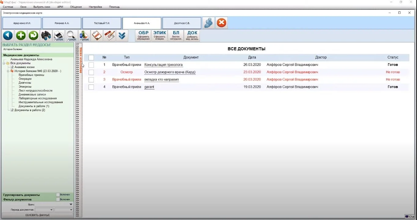Выбор нескольких пациентов для просмотра данных в электронной медицинской карте