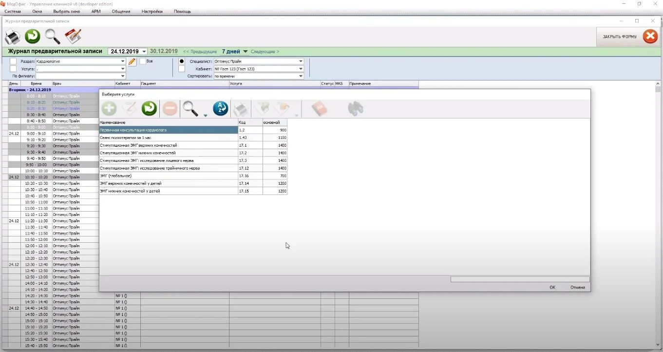 Журнал позволяет формировать гибкое расписание, производить запись пациента, в случае необходимости осуществлять перенос его записи на другое время или отменять предварительную запись. Расписание работы клиники можно формировать как с привязкой к врачам, так и к кабинетам.