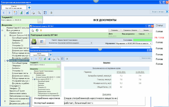 Это инструмент работы врача, который позволяет ему оперативно просматривать данные пациента, вести дневниковые записи, делать назначения.